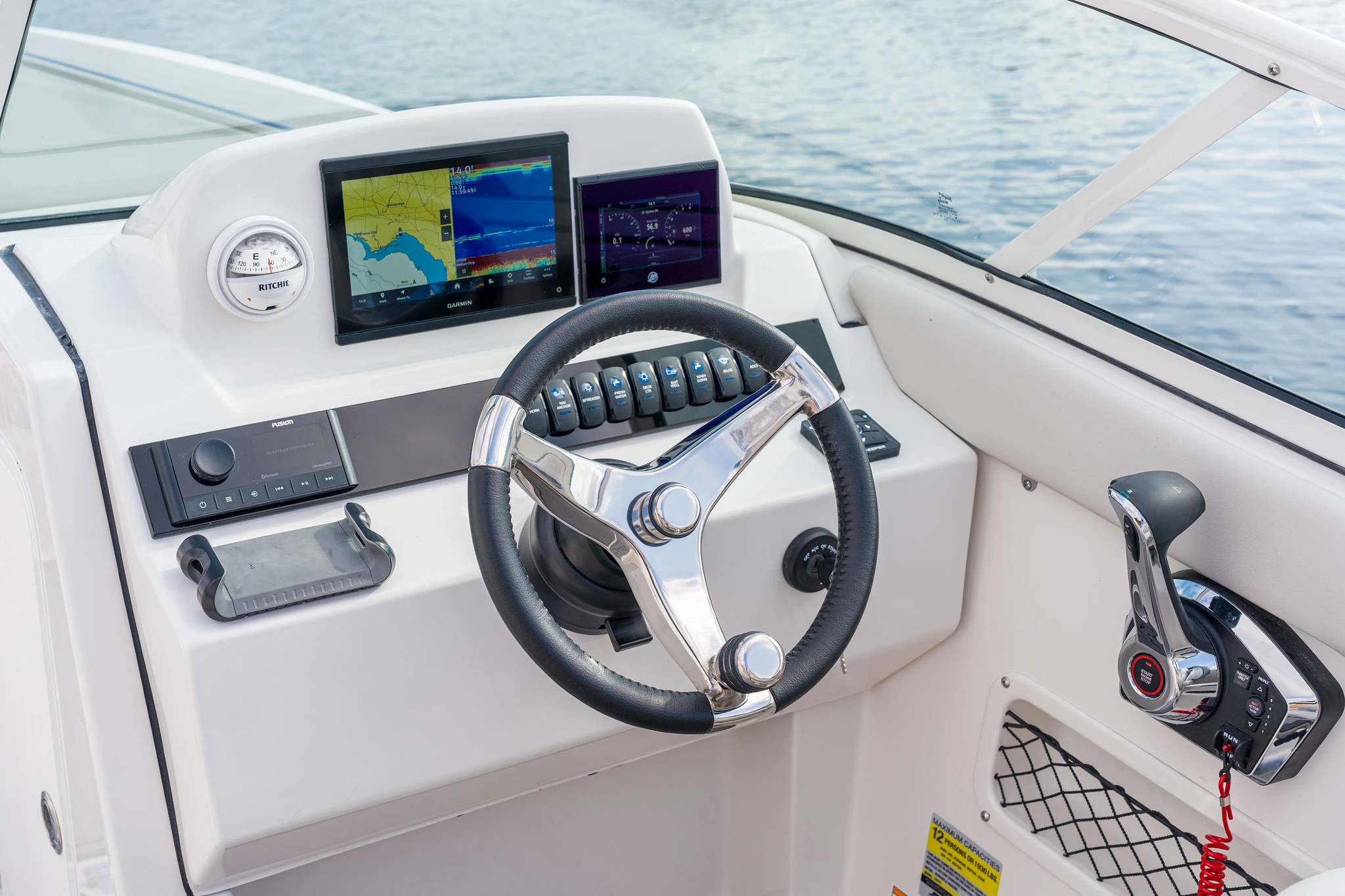 Incredible versatility and comfort are hallmarks of the 276 Dual Console. A 6th-generation VDS hull ensures a soft, dry ride, while the spacious, ergonomic deck design and an array of premium features make it equally well-suited for offshore fishing and fun-filled days with family.